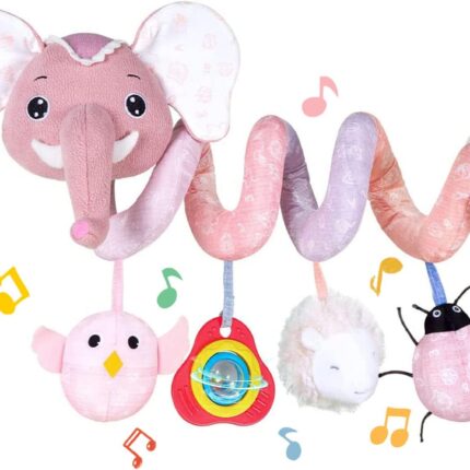 Newborn Car Seat Toys, Stroller Toys for Babyies 0-6 Months,Infant Activity Spiral Plush Toys Hanging – Carseat Stroller Crib with Musical Rattle Toy for Boys Girls 0 3 6 9 Months