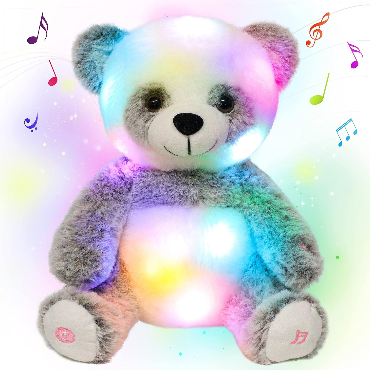 LED Musical Panda Light-up Stuffed Animal Singing Glowing Plush Adjustable Volume Lullaby Toy Gifts for Kids Toddler Girls Birthday Christmas Plushies, 13″