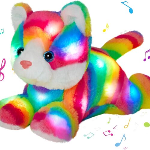 13″ Light up Musical Rainbow Cat Stuffed Animal,LED Night Light Glowing Singing Snuggle Kitty Plush Toy Glow in The Dark,Christmas Birthday Gifts for Toddlers Kids Children