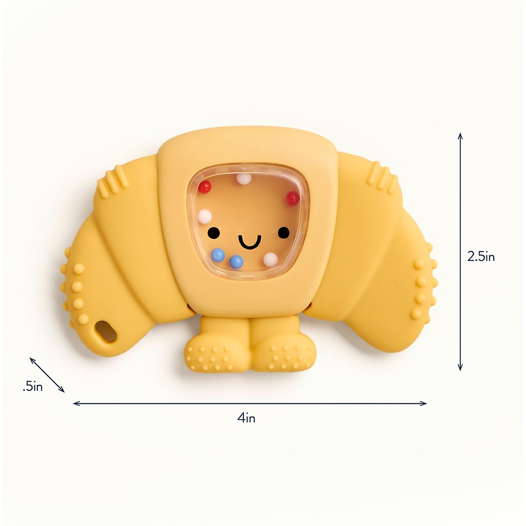 - This adorable rattle and teether features gentle rattle sounds and colorful dancing beads to entertain your little one